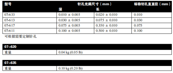 针孔光阑是由 90:10的金-铂合金根据相应的测试架和形状制成的。07-620和 07-635 型高质量比较器